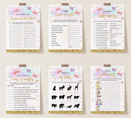 The games can be like the” the celebrity baby names” and “What baby item begins with this letter?”